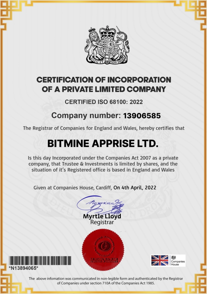 Bitmine Apprise Limited has signed an investment insurance contract with a leading insurance company.
